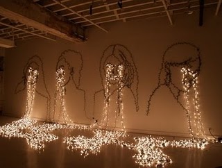 Talvez brincar um pouco com a quantidade imensa de cordões de luz que tenho aqui em casa? Pode ser… Gostei da idéia quando vi este post no M²Arquitetura.
