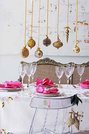Pela quantidade e diversidade de bolas de natal que eu tenho aqui, gostei dessa idéia de aproveita-las de uma maneira diferente. Acho que vale a pena distribui-las pela casa não deixando o Natas restrito à porta de entrada e à sala. Esta eu peguei na Revista Casa e Jardim ja ha algum tempo atrás.