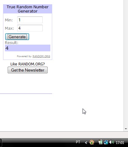O sorteio será através do site Random.org respeitando a ordem de postagem dos comentários.