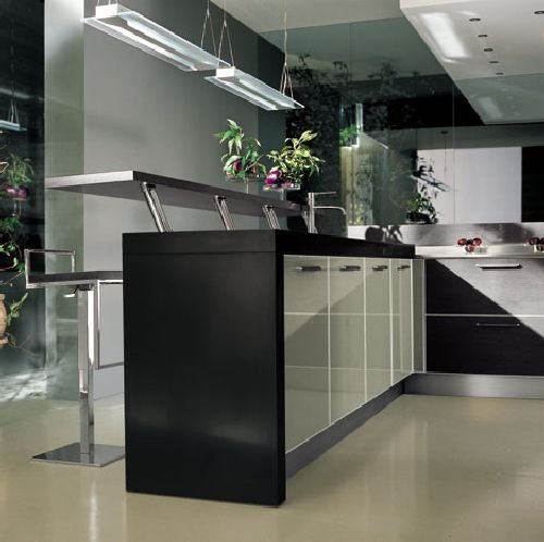 Os reflexos podem ser também pequenos como neste caso. Observem a lateral da coifa. Nesta foto não dá para ver mas muito provavelmente aqueles riscos de luz estão sendo projetados em algum lugar na lateral esquerda desta cozinha.