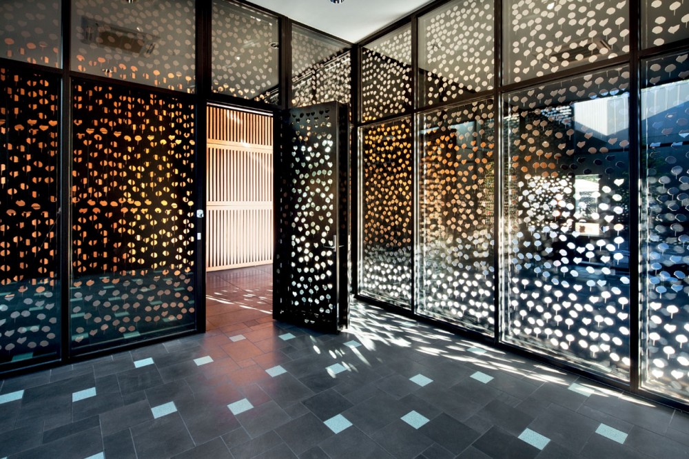 Olhem que idéia bárbara para fazer no insufilm. Esse aqui foi feito em chapas mas dá pra fazer em insufilm e aplicar nos vidros. O efeito da luz que passa direto pelos vãos podem gerar e tudo vai depender do desenho e da luz que atinge diretamente o ambiente.