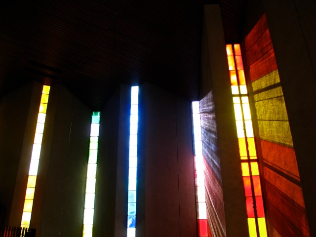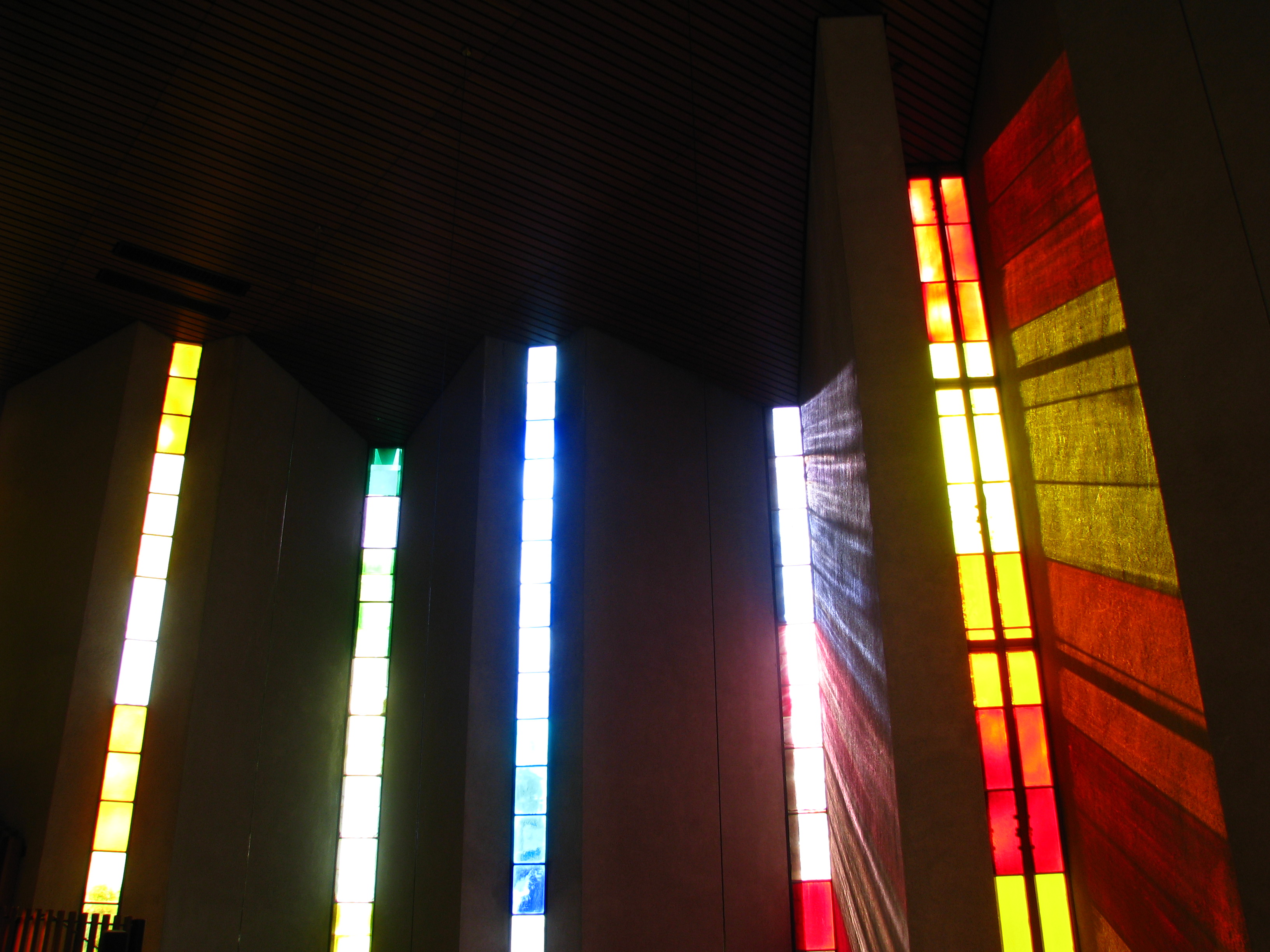E há também o recurso dos vitrais para a iluminação diurna, especialmente: