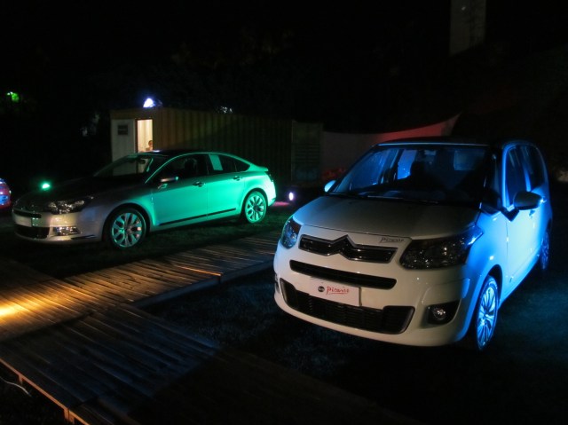Utilizamos um container médio, palets e iluminação. A Vernier Citroen colocou três carros em exposição no gramado. Obrigatoriamente todos os visitantes circulam os carros.