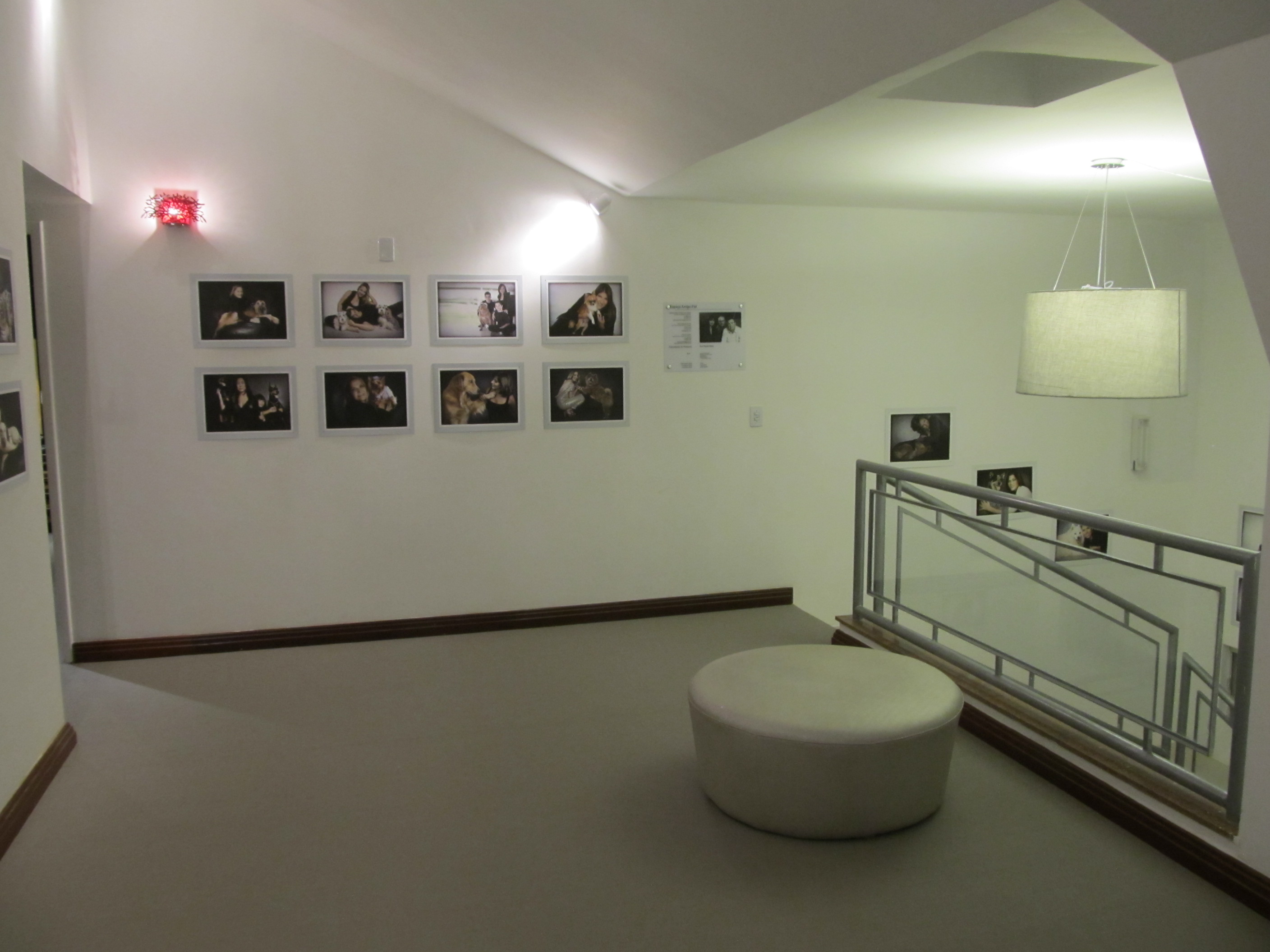 Como qualquer imagem, as fotos necessitam ser observadas a certa distância o que nos levou a colocar apenas um puff e um aparador como itens de mobiliário no espaço.