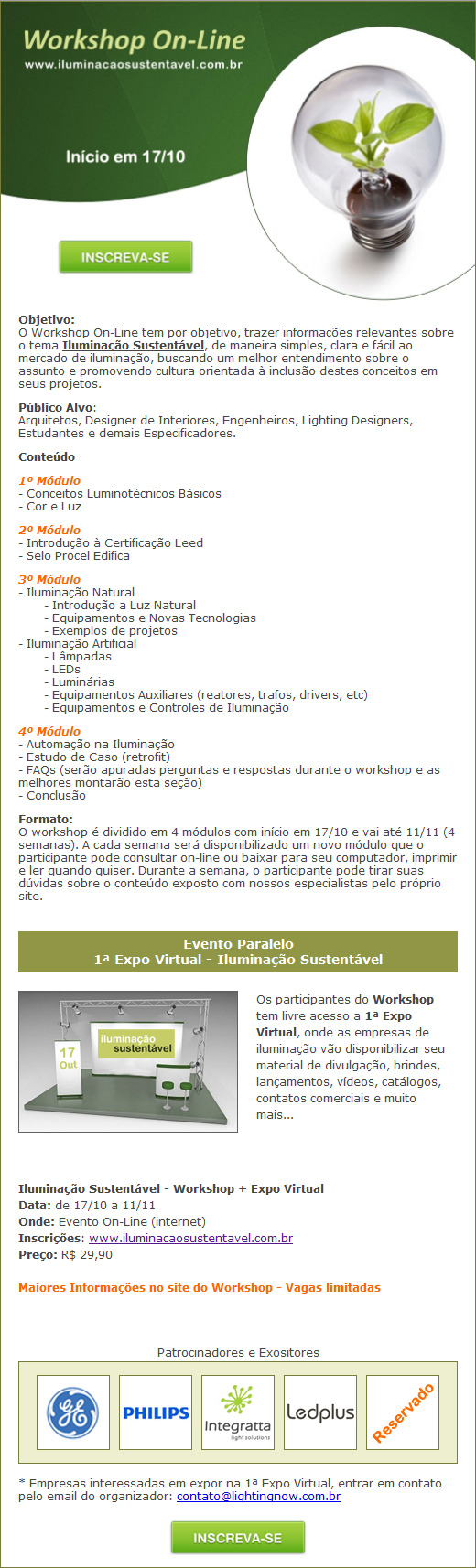 Workshop On-Line – Iluminação Sustentável Em 16 16America/Sao_Paulo setembro 16America/Sao_Paulo 2011 por Paulo Oliveira LDem 100% Nacional, Ambientes & Interiores, arquitetura, automação, Cursos & Eventos, Desenho & Técnicas, ECO X, Educação, eficiência energética, Lighting Design, Materiais e meios, mercado, Parceiros, sustentabilidade Para maiores informações acesse http://www.iluminacaosustentavel.com.br/ Mais uma realização do Divulgue isto! Clique para enviar um link por e-mail para um amigo(abre em nova janela) E-mail Clique para imprimir(abre em nova janela) Imprimir Tweet Clique para compartilhar no WhatsApp(abre em nova janela) WhatsApp Clique para compartilhar no Telegram(abre em nova janela) Telegram PocketCompartilhar no Tumblr Clique para compartilhar no Reddit(abre em nova janela) Reddit Curtir Carregando... Relacionado