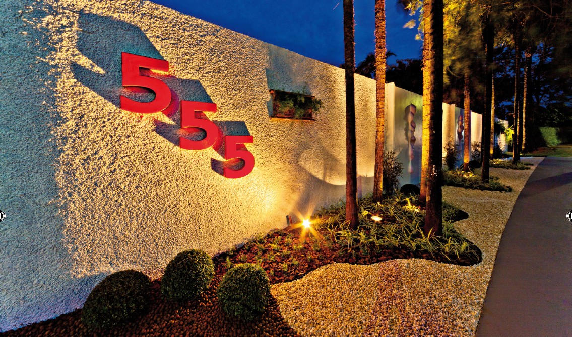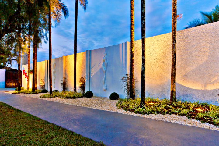 Alteramos o projeto de LD, o paisagismo, as cores e a disposição dos elementos do muro. Com isso ganhamos muito esteticamente. Mantivemos o volume que desejávamos desde o início e o destaque de dia e/ou noite.