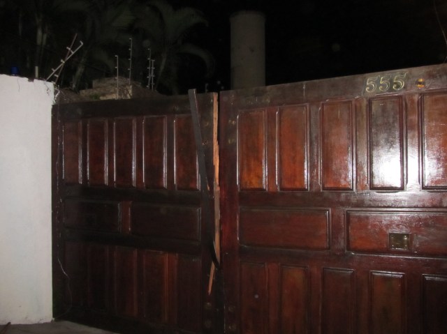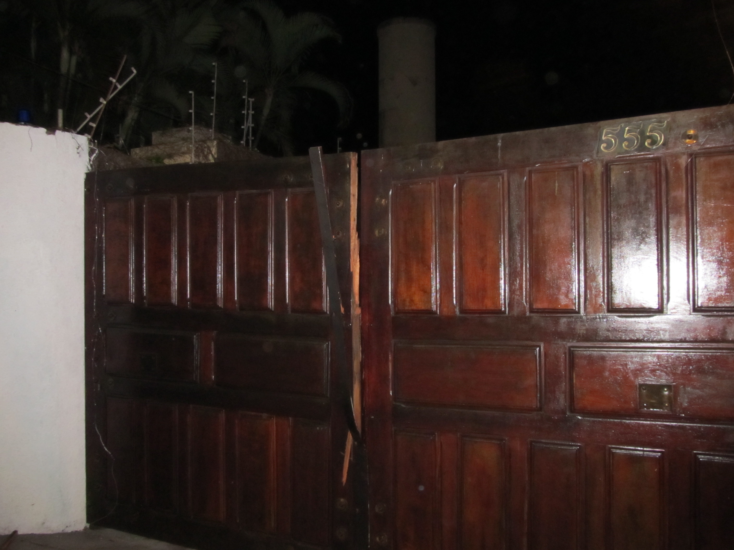 Isso porque já eram mais de 23:00hs. Quiseram jogar a responsabilidade disso sobre nós mas, como viram que eu tinha tudo devidamente registrado (fotos, vídeos e testemunhas), desistiram. Porém o portão ficou lá danificado durante toda a mostra e ainda está. Será entregue assim à Luciane, proprietária da residência?
