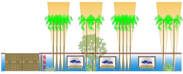 Porém, com o passar do tempo este projeto começou a gerar dúvidas: não tínhamos contato direto com a proprietária da casa para verificar a necessidade de alterações pós-mostra e também começamos a perceber que estávamos caindo no óbvio, na aplicação comum. Também o detalhe que na escultura da direita, bem nesse espaço, há o relógio de luz da Copel e este não poderia ficar inacessível. O projeto em si não atrapalhava em nada o acesso a ele, porém ele estragava o visual do projeto. Resolvemos então alterar radicalmente o projeto.
