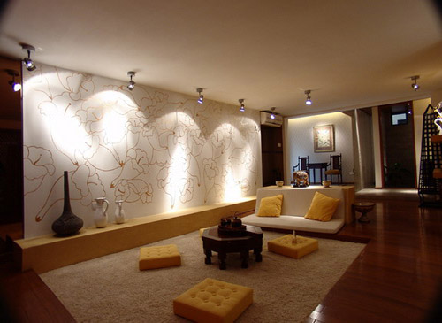 Observem, especialmente, o resultado da iluminação sobre o papel de parede metalizado…