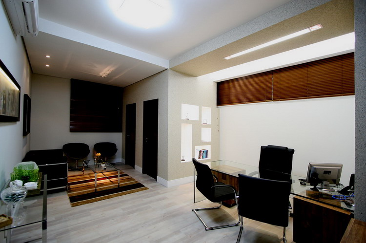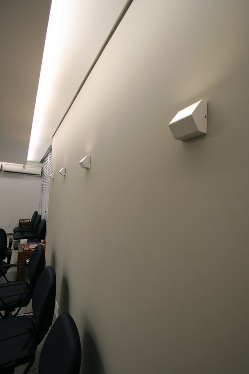 Aqui, de cara, já percebemos dois erros: reflexo no teto e ofuscamento na parede atrás da mesa. Ou dminui-se a quantidade de luz que sai da sanca e banha a parede, ou escureça a parede um pouco para quebrar o ofuscamento. Talvez, se a luz tivesse TC um pouco mais baixa essa sensação não aconteceria pois ficaria mais suave.