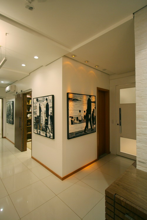 Agora, volte na imagem anterior e localize estas luminárias. Percebe como o efeito simplesmente desapareceu? Sabe o porque disso? Uma ampla luz banhando a parede onde estão as luminárias (na verdade são balizadores aplicados de outra forma).
