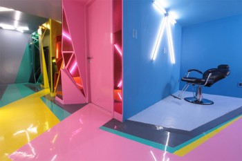 Alguns profissionais tem usado e abusado das fluorescentes tubulares e este é um bom exemplo. Além de iluminar, as formas geradas pela instalação destas criam interessantes desenhos além de iluminar e bem os ambientes. Veja mais imagens deste projeto aqui.
