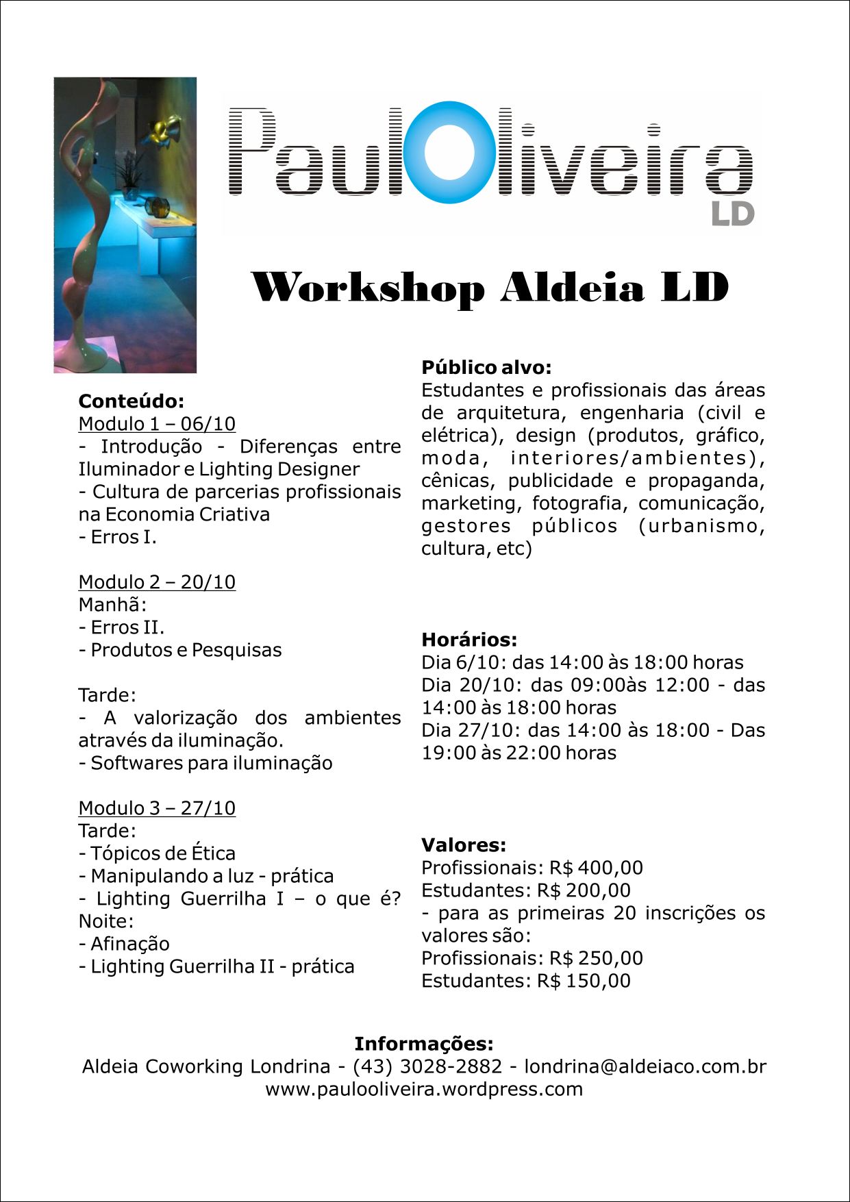 olá q ótimo este workshop tem poucas coisas em Londrina.. fora sse farão mais alguns? até quando pode fazer a inscrição deste?