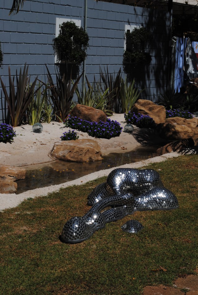 Escultura Eikonox by Jadir Battaglia; Arte em madeira by Hidéia; Aramados (gaiolas e adornos) by Só Art’s.