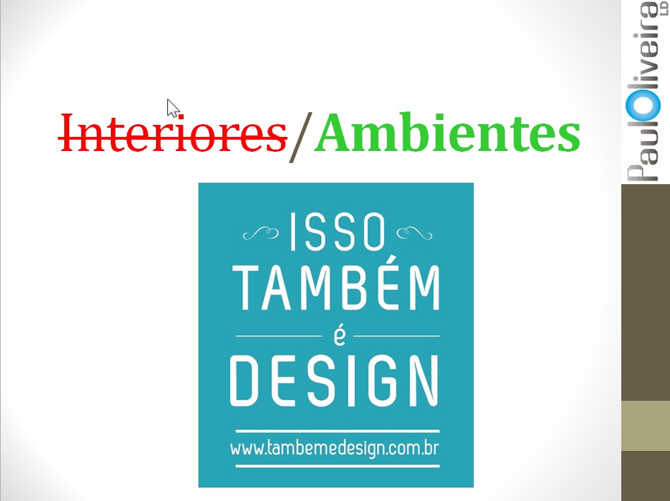 Notem que risquei propositalmente a denominação Interiores pois estamos num momento de transição e formação de nossa identidade profissional. São muitos os profissionais que, assim como eu, rejeitam o termo e adotam AMBIENTES.