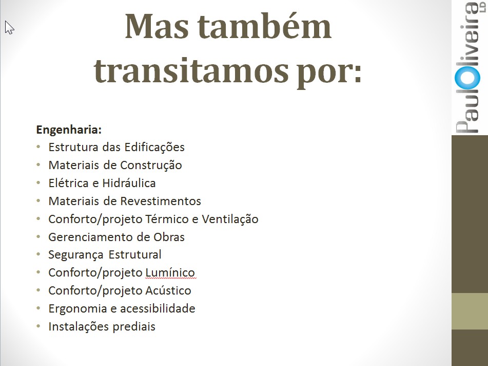 Podem estar se perguntando do porque eu ter colocado Engenharia e não Arquitetura. Simples: estes conhecimentos são da Engenharia. A arquitetura apodera-se deles também para formar a sua Matriz.