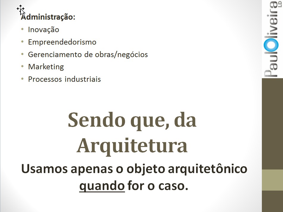 Já escrevi em diversos posts neste blog sobre áreas de atuação profissional que vão além dos limites arquitetônicos. Resumindo, também podemos atuar