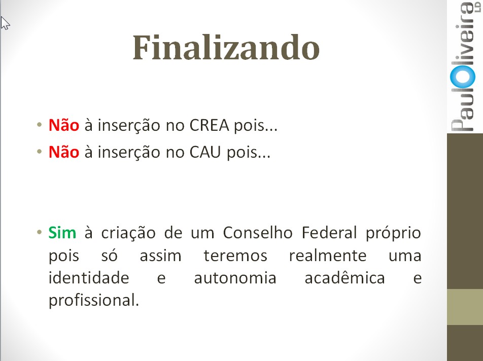 Creio que não precisamos nos desmerecer para reivindicar. Deveríamos formar equipes pensantes e multidisciplinares para o sucesso dos projetos e profissionais envolvidos.