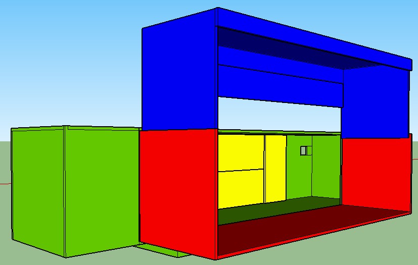 O tema deste projeto é a Arte onde engloba o Teatro, a música e a dança, onde serão adaptados os baús de um bitrem com comp. 14 m, alt. 3,37 m e larg. 2,60m. O primeiro baú terá uma “gaveta” de 10 m centralizada que se abrirá para o lado esquerdo ganhando profundidade e outra dentro desta, abrindo-se para cima proporcionando a altura para a caixa cênica. Os dois metros intactos do baú que sobram para os lados estarão os banheiros no mesmo sistema dos de ônibus. Para a abertura que dá largura para os camarins tem-se a mesma ideia da abertura do palco, abre-se como outra gaveta na lateral direita do baú, com a mesma medida de 10 m. Esses deslocamentos serão todos dados por sistemas hidráulicos. Ainda lembrando-se que na traseira do baú tem-se uma porta com altura total do mesmo (descontando-se as medidas do piso e de teto) e sua largura de 1,48 m. A fixação destas aberturas é dada pela plataforma tucklift horizontal o qual é formado por um sistema hidráulico compacto e provido de válvula de segurança. Observe as imagens para entender o sistema: