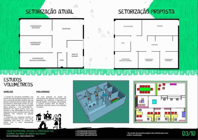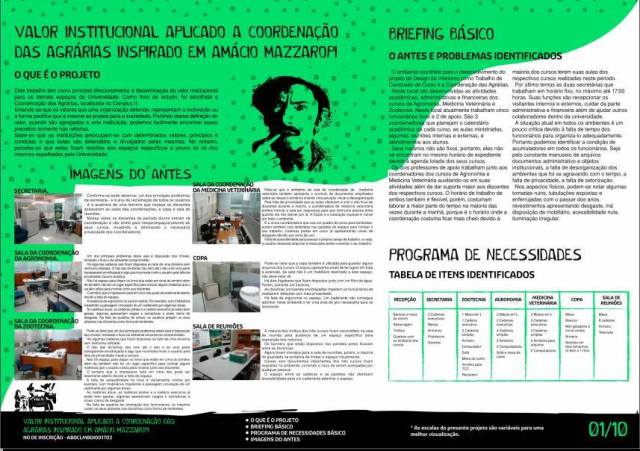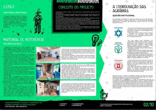 Dada a complexidade física das necessidades encontradas, o projeto propôs um excelente aproveitamento dos espaços através de um layout justo, racional e sem excessos expressando o cuidado institucional com seus setores. Aliado a isso, trazer para dentro da instituição a “cara” do meio onde os trabalhos são desenvolvidos através de formas, cores, materiais, elementos e detalhes típicos da roça reforça a preocupação na manutenção do elo social da IES com seu público alvo e final.